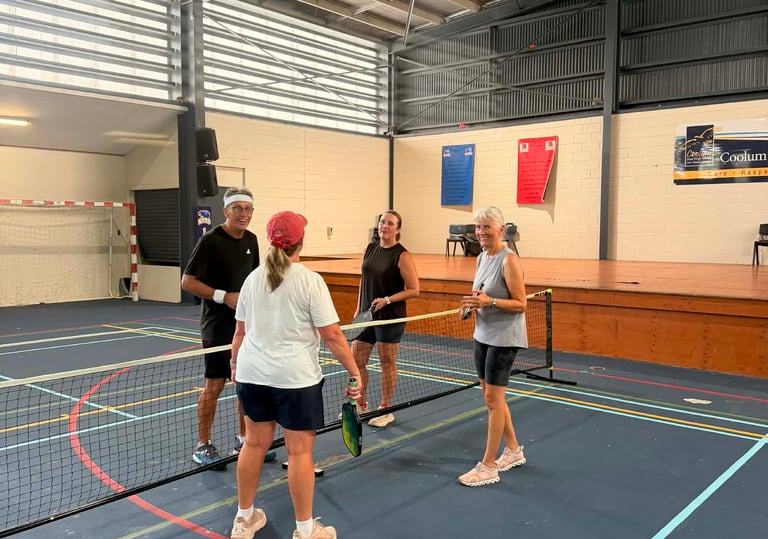 Fun and inclusive indoor pickleball sessions for beginner, intermediate, and advanced players.